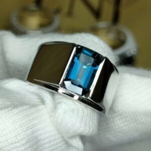 Nhẫn nam đá Topaz London (vàng trắng 14k)