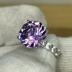 Nhẫn nữ đá thạch anh tím thiên nhiên (vàng trắng 14k)