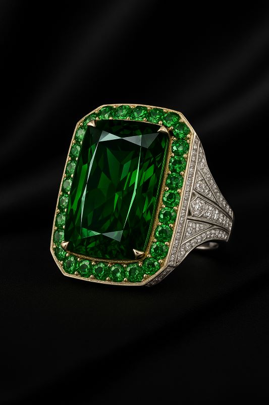 Sắc xanh Heineken – tông lục bảo đậm sâu, trong trẻo, ánh lửa nội tinh mạnh – mang đến cảm giác của một kho báu được lưu giữ nơi vương thất châu Âu, nay xuất hiện trong bộ sưu tập giới hạn của Đá Quý LNJ.